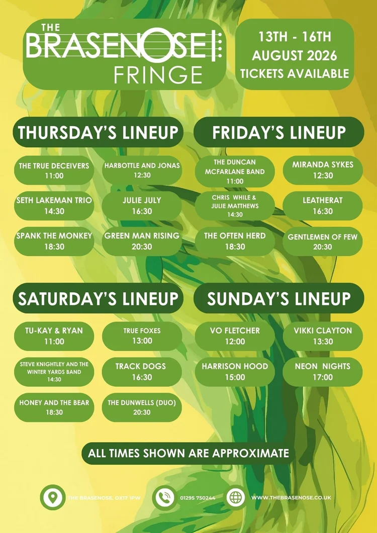 Brasenose Fringe Festival 2026 — live music, comedy, theatre and spoken word at Brasenose College, Oxford.
